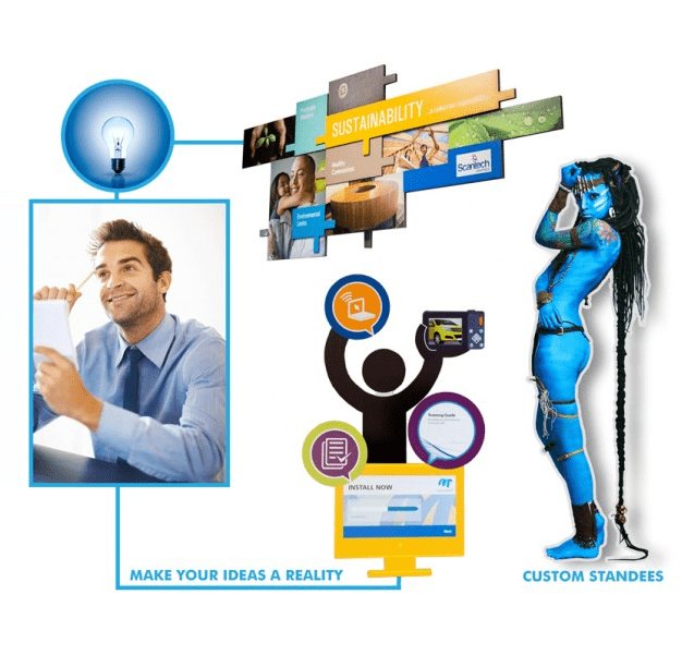 Have a unique idea for a display that might require some special attention? We offer an all in one business solution for those who want to bring their vision to life. With our flatbed printer and CNC digital cutter we’ll work with you to help fabricate your custom display. Scantech Graphics offers graphic design services to those who need a little help getting their idea out of their head and into the print.